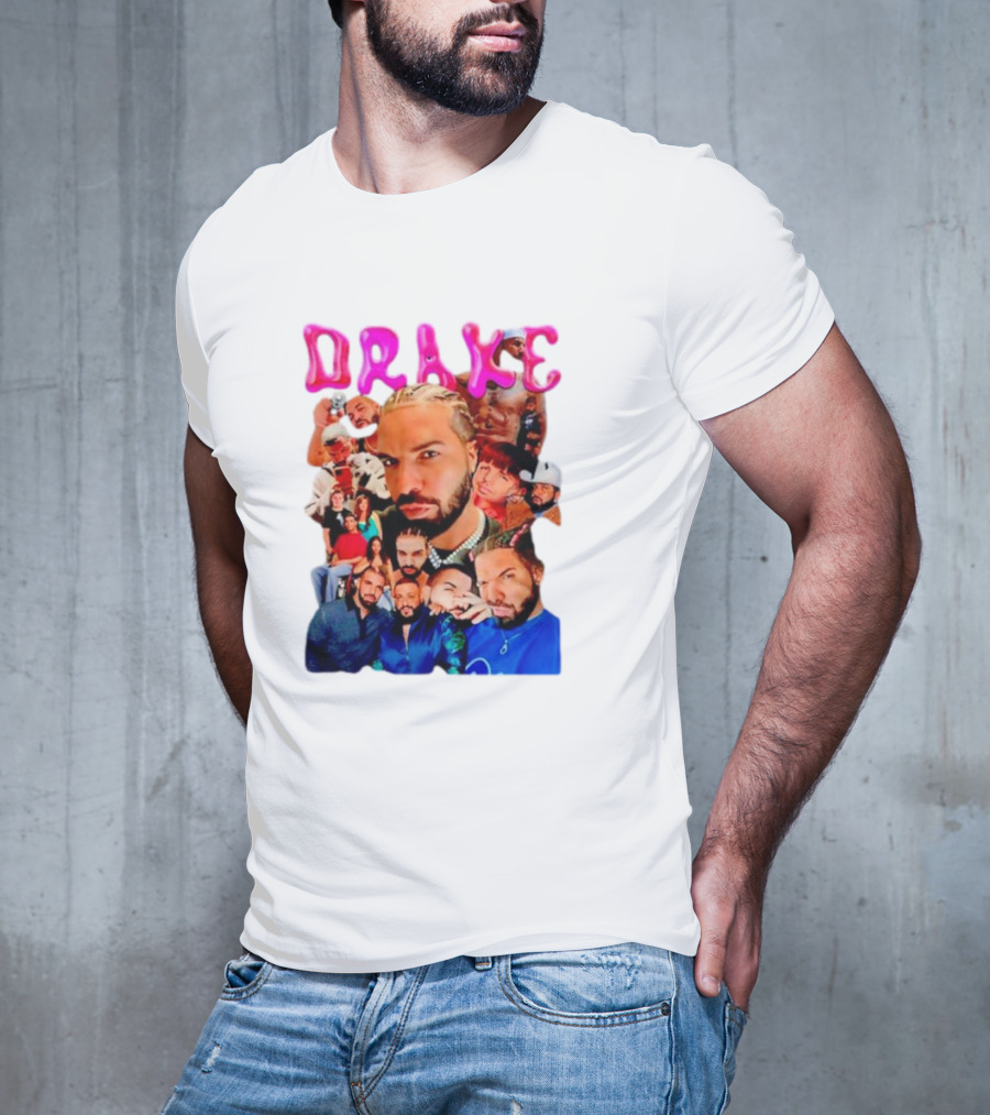 drake bootleg vintage T-shirt — on-model front view, hands near pockets.
