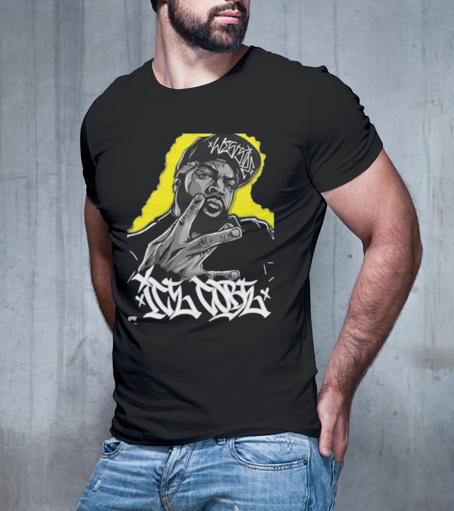 Ice Cube Westside Hand Gesture Hip Hop T-shirt — on-model front view, hands behind back.