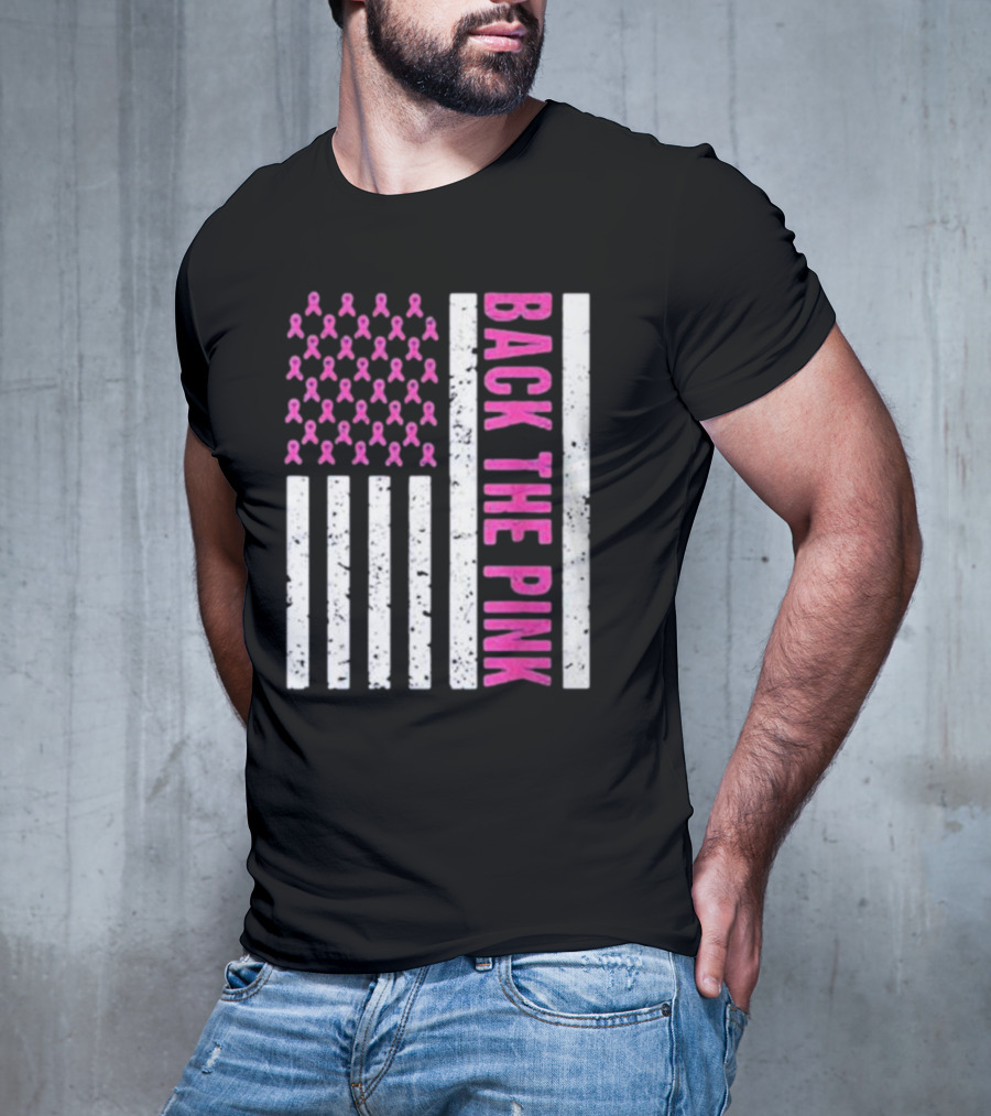 Back The Pink Breast Cancer Awareness American Flag Ribbons T-Shirt
