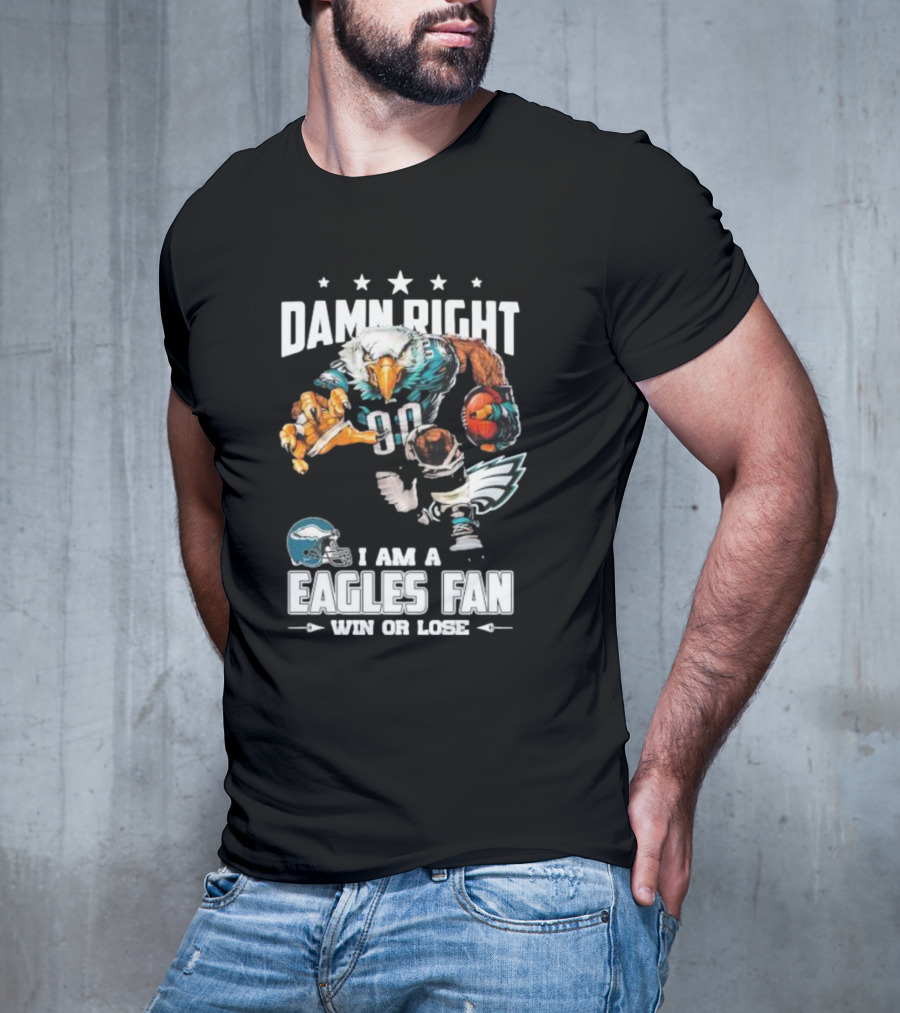 Damn Right I Am A Philadelphia Eagles Fan Win Or Lose Eagle Football Player T-Shirt