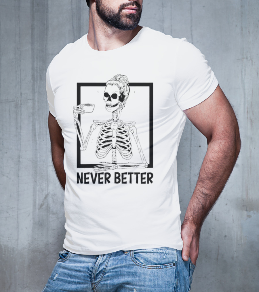 Unisex Halloween Skeleton Never Better Drink Skeleton Women Cotton T-Shirt