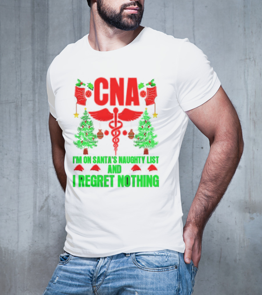 Unisex CNA I'm on Santa's Naughty List and I Regret Nothing Christmas Trees Stockings Cotton T-Shirt