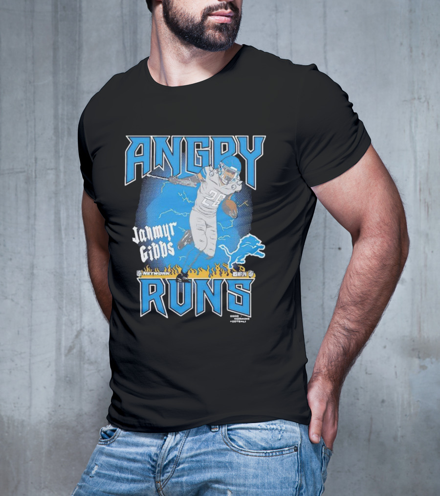 Jahmyr Gibbs Angry Runs Detroit Football Flames And Lion T-Shirt