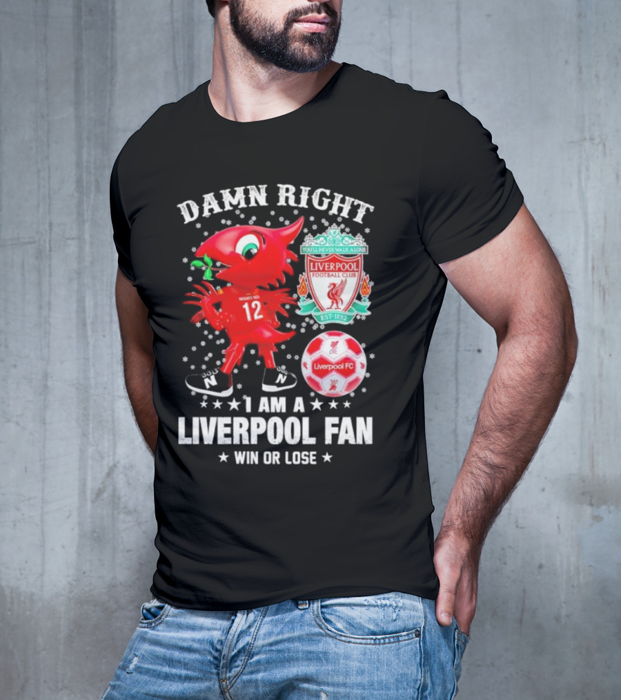 Damn Right I Am A Liverpool Fan Win Or Lose Mighty Red Snowflakes Liverpool FC Football Club Est 1892 T-Shirt