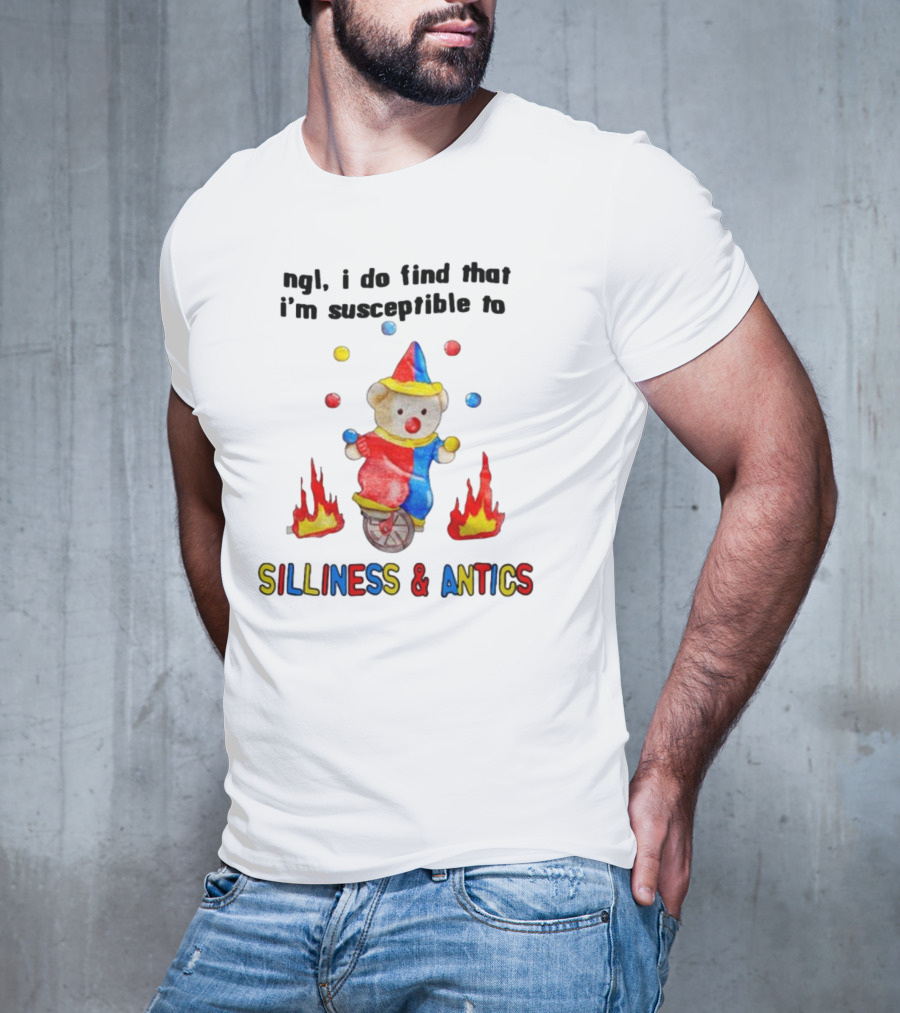 Ngl I Do Find That I'm Susceptible To Silliness And Antics Juggling Clown Bear On Fire Unicycle T-Shirt