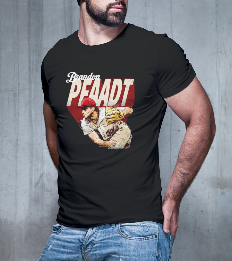 Brandon Pfaadt Arizona Diamondbacks Pitching Action Signature Tee — on-model relaxed pose, hand behind head.