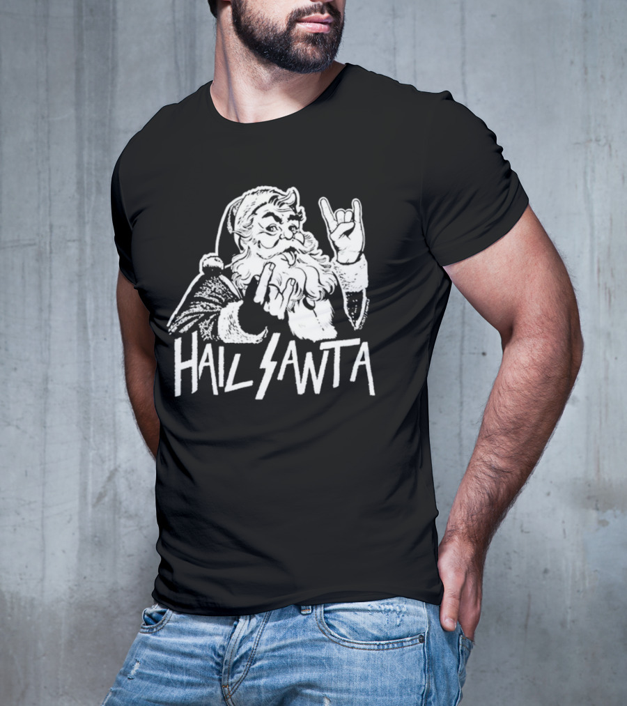 Hail Santa Christmas Rock Devil Horns Santa Claus T-Shirt