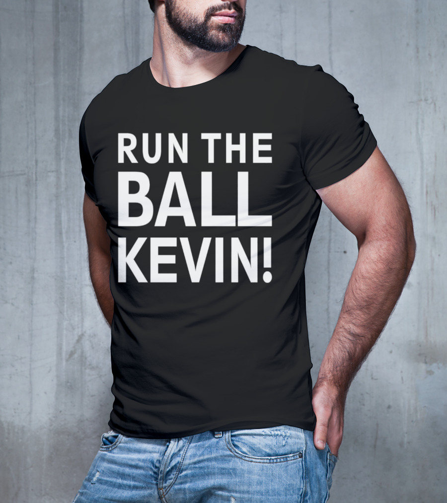 Run the Ball Kevin T-shirt — on-model front view, hands behind back.