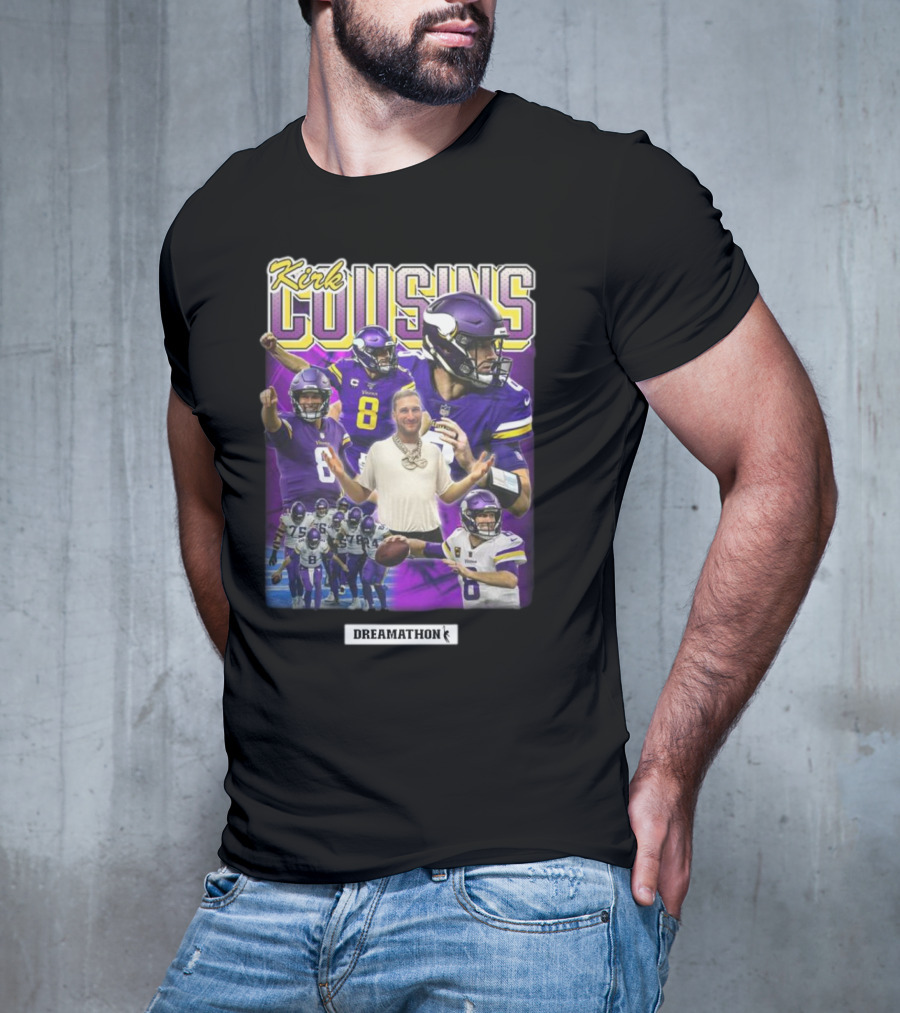 Kirk Cousins Dreamathon PB-AP Tee — on-model relaxed pose, hand behind head.