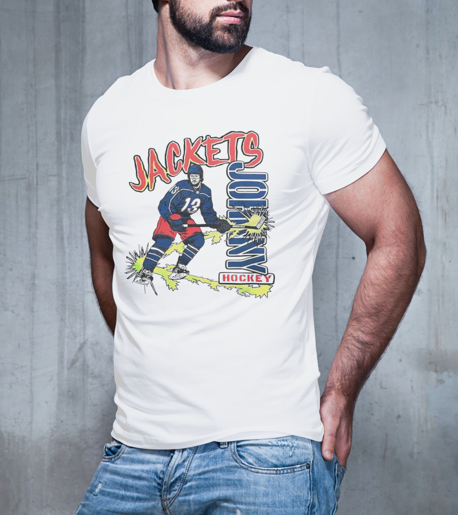 Jackets Johnny Gaudreau Hockey T-shirt — on-model front view, hands near pockets.