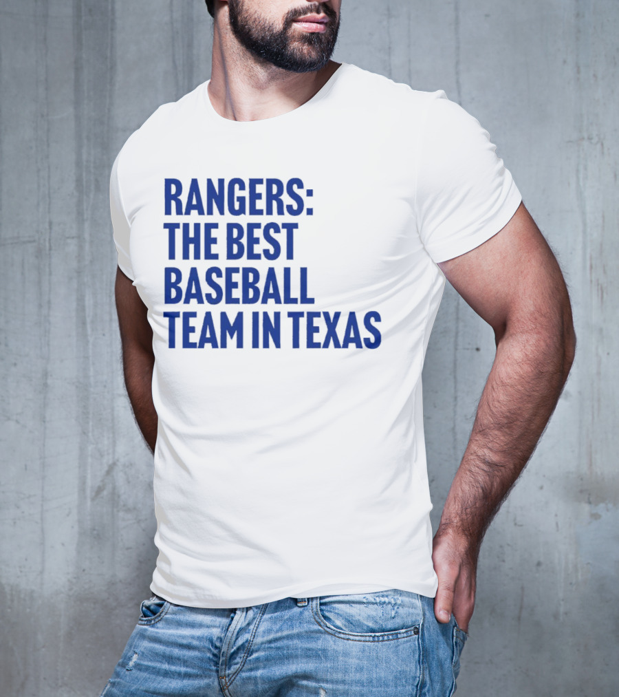 Rangers the Best Baseball Team in Texas T-shirt — on-model front view, hands behind back.