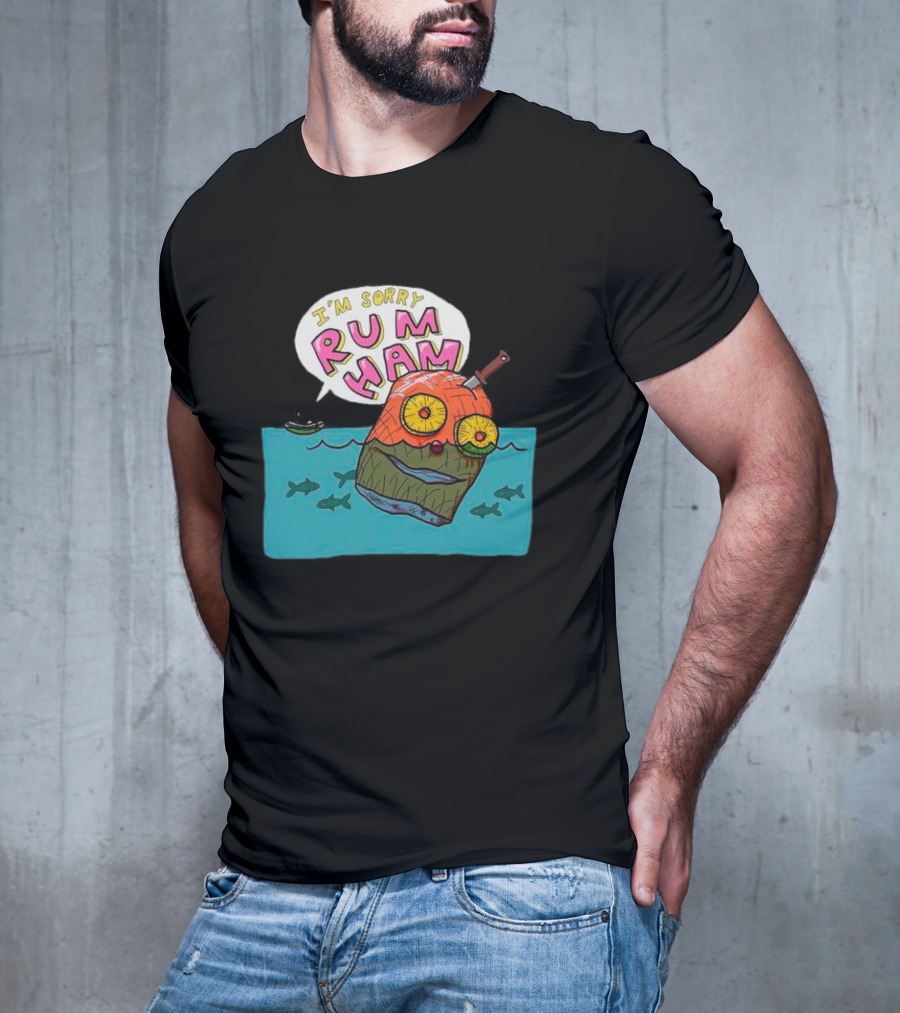 I’m Sorry Rum Ham Cartoon Floating In Water With Knife And Fish T-Shirt