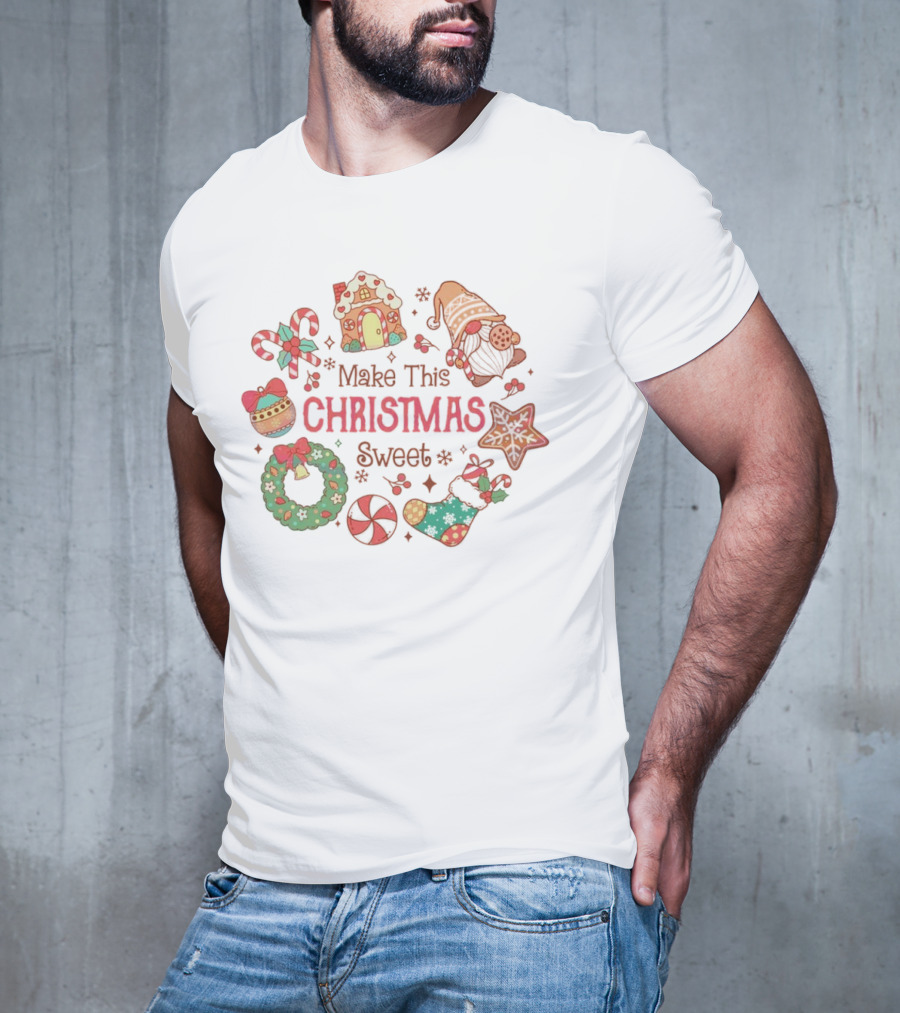 Unisex Make This Christmas Sweet Gingerbread House Candy Cane Stocking Wreath Cotton T-Shirt