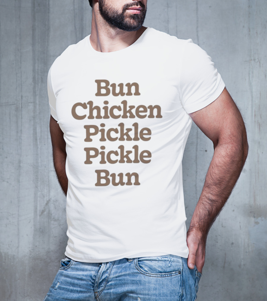 Bun Chicken Pickle Pickle Bun Stack Classic T-shirt — on-model front view, hands behind back.