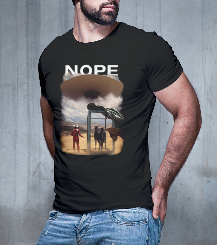 Unisex NOPE The Star Lasso Experience With UFO Above Cow and Cowboy Cotton T-Shirt