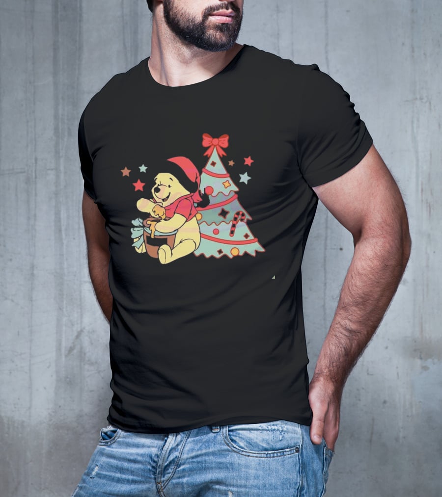 Winni The Pooh Bear Christmas Hunny Jar And Festive Tree T-Shirt