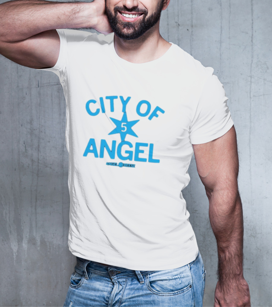 City of Angel 5 Star Angel Reese T-shirt — on-model front view, hands behind back.