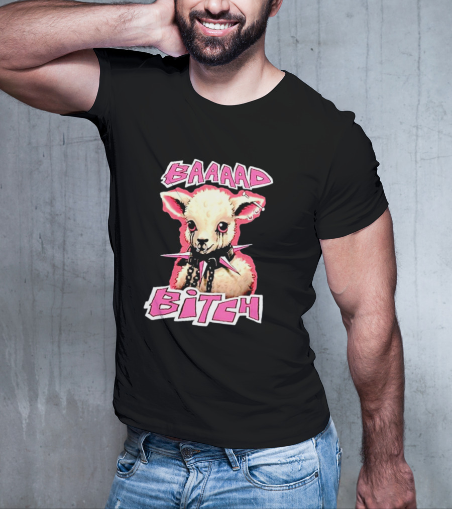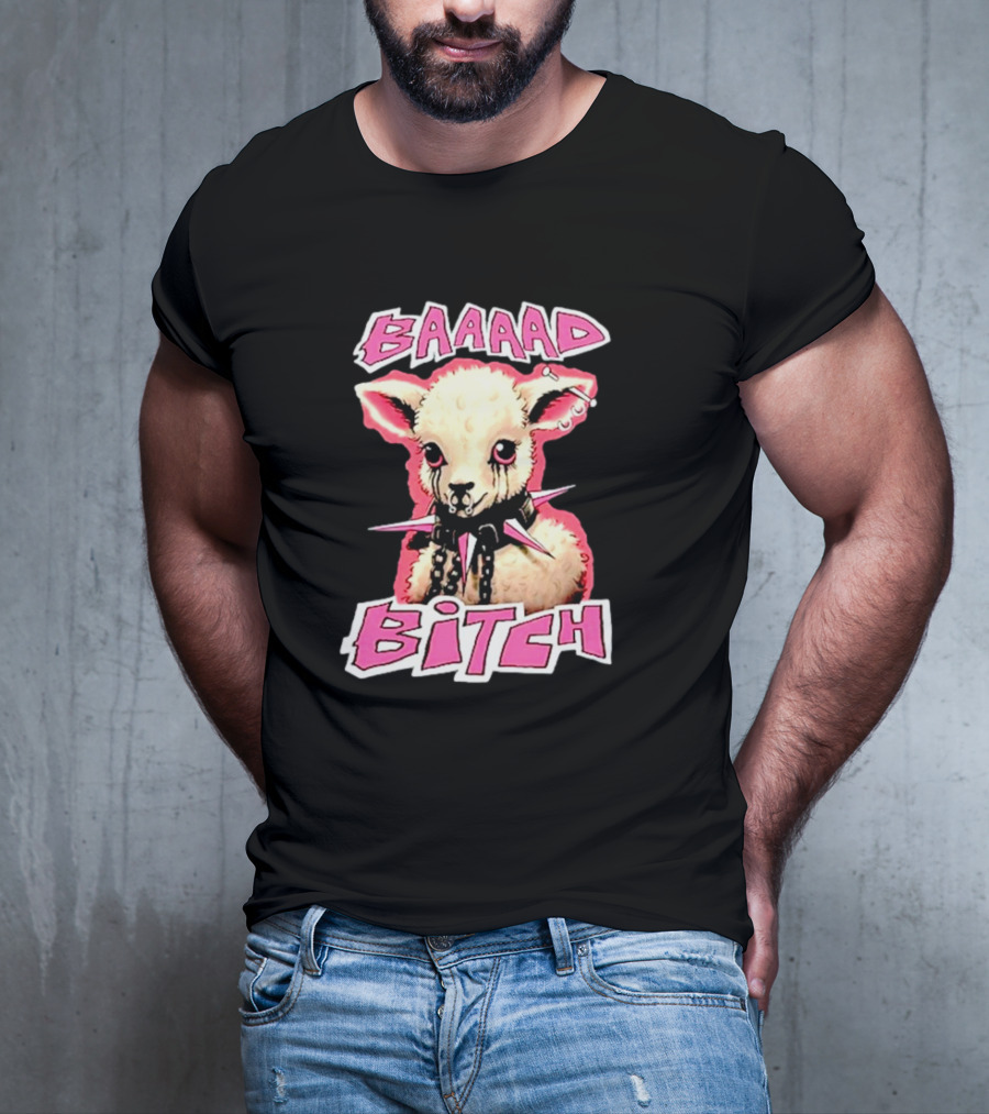 Unisex BAAAAD Bitch Sheep with Punk Rock Cotton T-Shirt